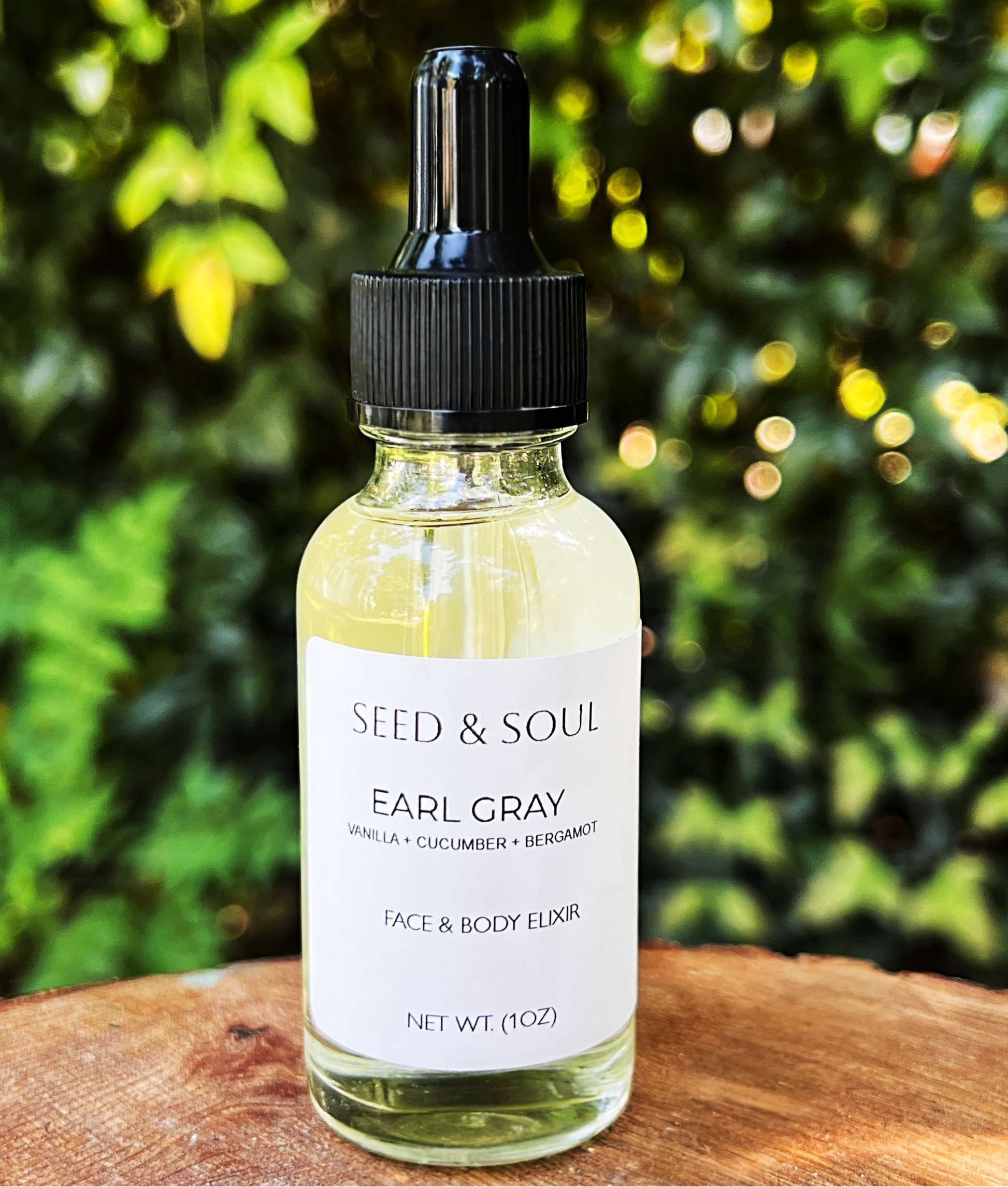 Discover the timeless beauty of Earl Gray, our luxurious face and body oil infused with notes of bergamot, cucumber, vanilla, and the iconic Earl Gray tea. This silky blend is designed to drench your skin in hydration while delivering powerful anti-aging benefits that leave you glowing, head to toe.